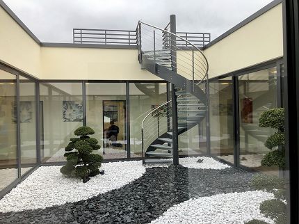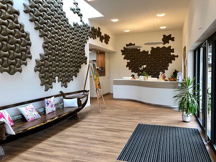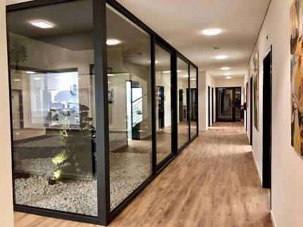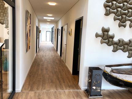 Es entsteht ein modernes Ensemble mit einer Grundfläche von ca. 750 Quadratmetern mit mehreren unterschiedlich hohen, miteinander verbundenen, lichtdurchfluteten, teils verputzten und teils verklinkerten Gebäudeteilen mit Flachdach. Ein Highlight bildet das verglaste Atrium und der 70 Quadratmeter große multifunktionale Wartebereich. Der Außenbereich wird eine parkähnliche Gestaltung bekommen.