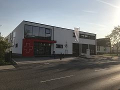 Hier konnte nun ein Gebäude konzipiert werden welches den heutigen Anforderungen Rechnung trägt. Auf dem 2.750 Quadratmeter großen Grundstück entstand so ein L-Baukörper in zweigeschossiger Stahl-Skelett-Bauweise, indem alle funktionalen Räume untergebracht werden konnten.