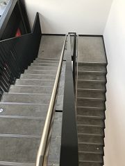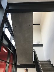 Über eine zwischengeschaltete Terrasse gelangt man zudem in den großen Lagerbereich über der Fahrzeughalle 02, wo das Einsatzmaterial und die Vorhaltung von Materialien untergebracht ist. Alle Fahrzeughallen erhielten große Schnelllaufschiebetore für den schnellen Einsatz.