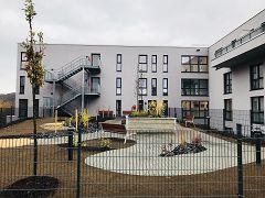Vor dem Hintergrund des demographischen Wandels und durchgeführten Analysen fand sich am südöstlichen Ortseingang ein idealer Standort für eine Seniorenwohnanlage. Auf dem ca. 4.900 m² großen Grundstück entsteht ein moderner Baukörper, indem die nutzungsspezifischen Funktionsräume untergebracht sind. Dieses, zurzeit in Planung stehende, Objekt besteht aus einem fünf geschossigem „Riegel“-Baukörper, der perfekt in die topographische Gegebenheit eingepasst ist. In diesem sind die modernen und komplett barrierefreien 85 vollstationäre Pflegeplätze, sowie insgesamt 16 Wohnungen untergebracht.