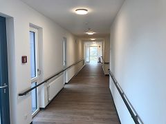 Das Haus verfügt außerdem über großzügige Gemeinschaftsbereiche mit Aufenthalts- und Therapieräumen, einem Bedarfsfriseur und Fußpflege, eine hauseigene Verteilerküche und Wäscherei, sowie einem Multifunktionsraum für festliche Aktivitäten.