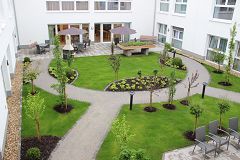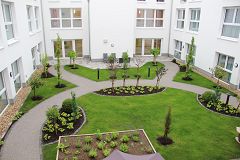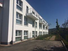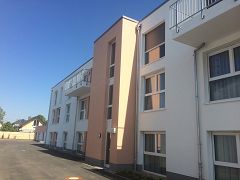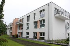 Dieses, zur Zeit in Planung stehende, Objekt besteht aus einem eingeschossigen, vorgelagertem Eingangsanbau und einem dreigeschossigen Ringbaukörper. In diesem sind die modernen und komplett barrierefreien 82 vollstationäre Pflegeplätze, sowie insgesamt 22 Wohnungen im Dachgeschoss untergebracht. Alle Zimmer werden nach den neuesten Pflegestandards ausgestattet und hochwertig eingerichtet. Die betreuten Wohnungen verfügen über ein großzügiges Duschbad und werden mit eigener Küche ausgestattet.