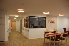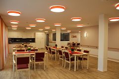 Das Haus verfügt außerdem über einen großzügigen Gemeinschaftsbereich mit Aufenthalts- und Therapieräumen, Friseur und Fußpflege, eine hauseigene Küche und Wäscherei sowie ein öffentliches Café/Bistro.