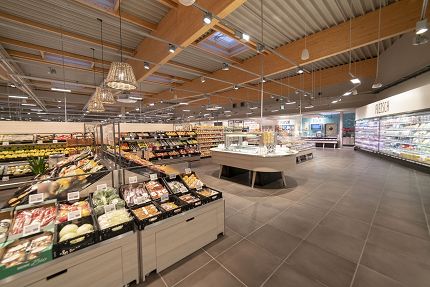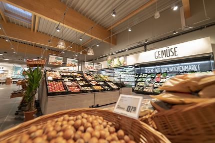 Nach dem Abbruch des vorhandenen Marktes entstand eine neue städtebauliche Konzeption auf dem Grundstücksareal. Auf einer Verkaufsfläche von insgesamt ca. 1.774 m² wird dem Kunden ein zeitgemäßes Einkaufserlebnis mit „Wohlfühl-Ambiente“ geboten. Neben dem modernen Einrichtungskonzept, tragen hierzu maßgeblich die großen Lichtbänder und Dachlichtkuppeln bei, die den Verkaufsraum mit viel Tageslicht durchfluten.