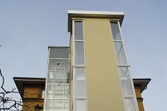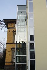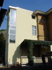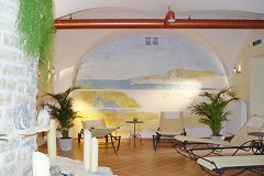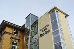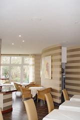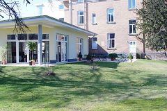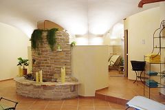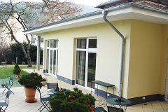 Das Wechselspiel zwischen den alten Tuff- und Ziegelfassaden und der modernen Architektur der Anbauten inmitten des 100-jährigen Baumbestandes ergibt den besonderen Reiz des Hotels. Das Gebäude wurde komplett entkernt. Im Gewölbekeller entstand ein großzügiger Wellnessbereich.