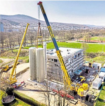 Das neue Blockheizkraftwerk (BHKW) der Ahrtalwerke in der Kreuzstraße in Bad Neuenahr soll zukünftig bis zu 1000 Haushalte mit klimaschonender Fernwärme versorgen können. Besonders beeindruckend sind die vier etwa 18 Meter hohen Wärmespeicher mit einem Fassungsvolumen von je 200.000 Liter.