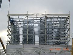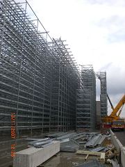 Die kompletten neuen Produktionsflächen wurden als Stahlkonstruktion mit bis zu 55,00m Spannweite errichtet. Das 27,00 m hohe Regallager wurde als selbsttragende Regalkonstruktion konzipiert und ausgeführt.