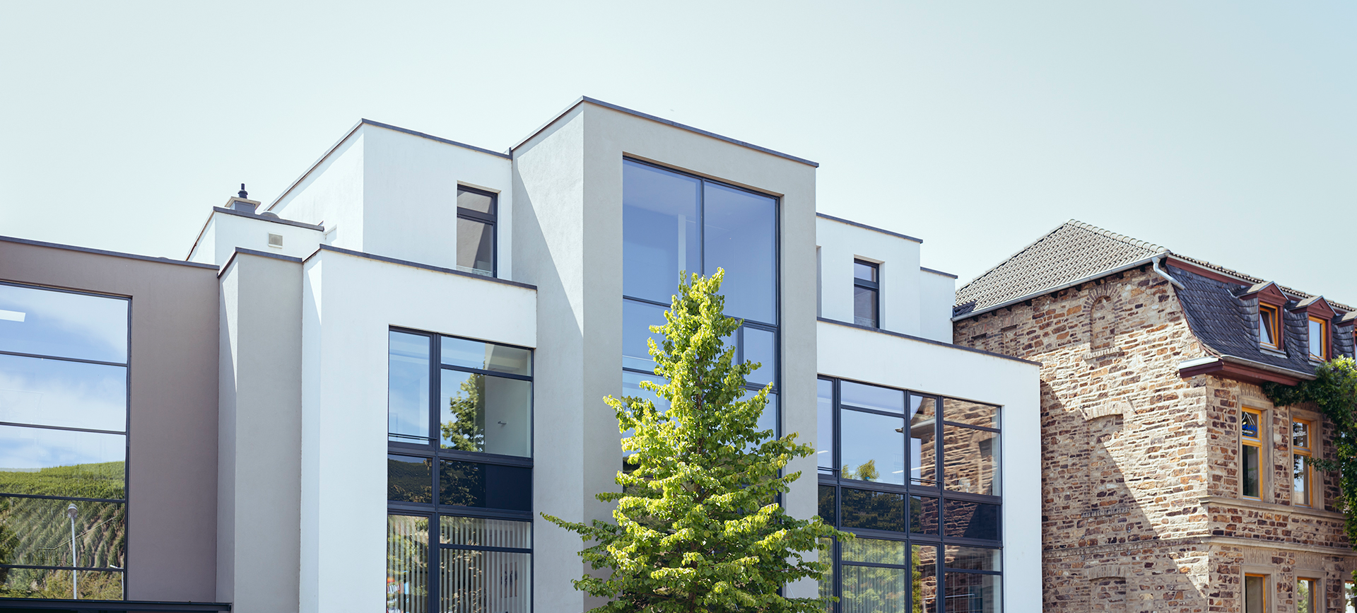 In der Wilhelmstraße in Bad Neuenahr-Ahrweiler entstand mit dem neuen Bürogebäude von HAiD Architekten | Ingenieure ein klar strukturiertes, kubisches Bauwerk, das Offenheit und Präzision verbindet. Großzügige Glasflächen zur Straße hin schaffen Transparenz und beleben den Dialog zwischen Innen- und Außenraum. Die Fassade greift die Formsprache des benachbarten Eigentumsobjekts auf und fügt sich harmonisch in das Straßenbild ein. Licht, Beton und Glas prägen eine Architektur, die Haltung zeigt und zugleich einen modernen Akzent im historischen Umfeld setzt.