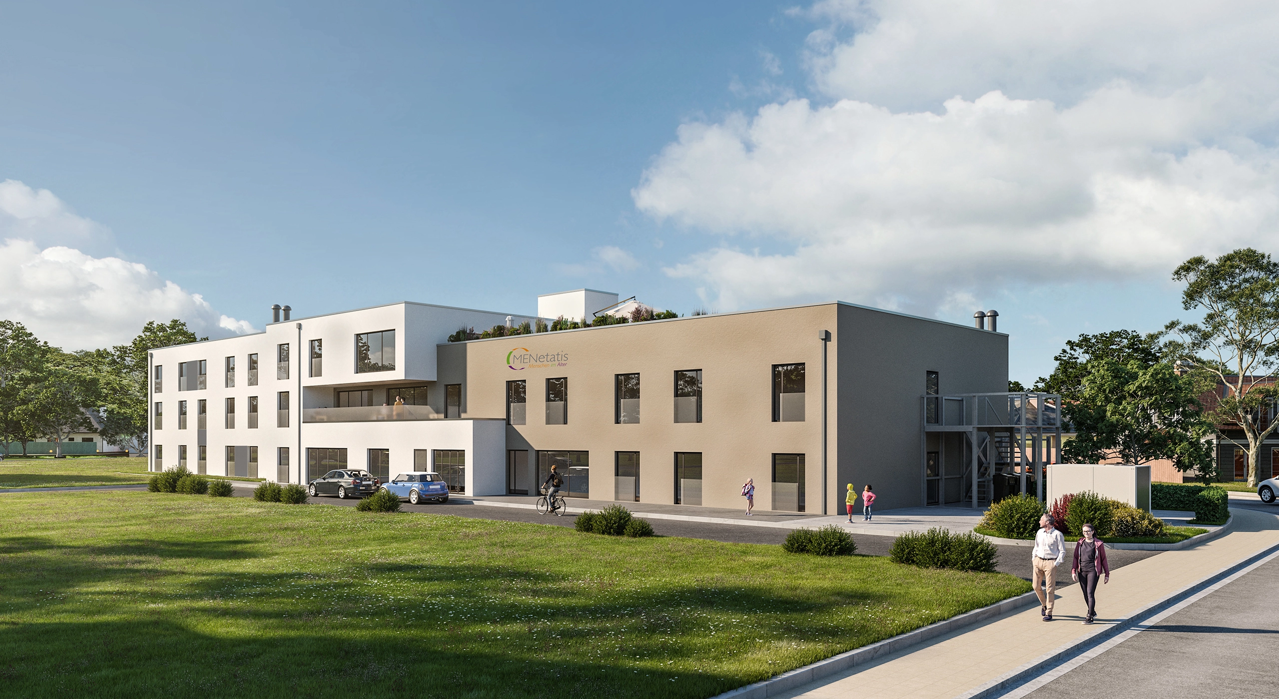 Das Seniorenzentrum Freigericht vereint moderne Pflegearchitektur mit wohnlicher Atmosphäre und einem offenen Quartiersgedanken. Auf Basis eines Wettbewerbsgewinns entstand ein Gebäudekonzept mit 75 Pflegezimmern und ergänzenden Appartements für Betreutes Wohnen. Transparente, klar gegliederte Baukörper schaffen helle, übersichtliche Räume und fördern zugleich Gemeinschaft und Rückzug. Ein öffentlich zugänglicher Café- und Bistrobereich stärkt die Verbindung zwischen Einrichtung und Umgebung – ein Ort, der Pflege, Leben und Teilhabe verbindet.