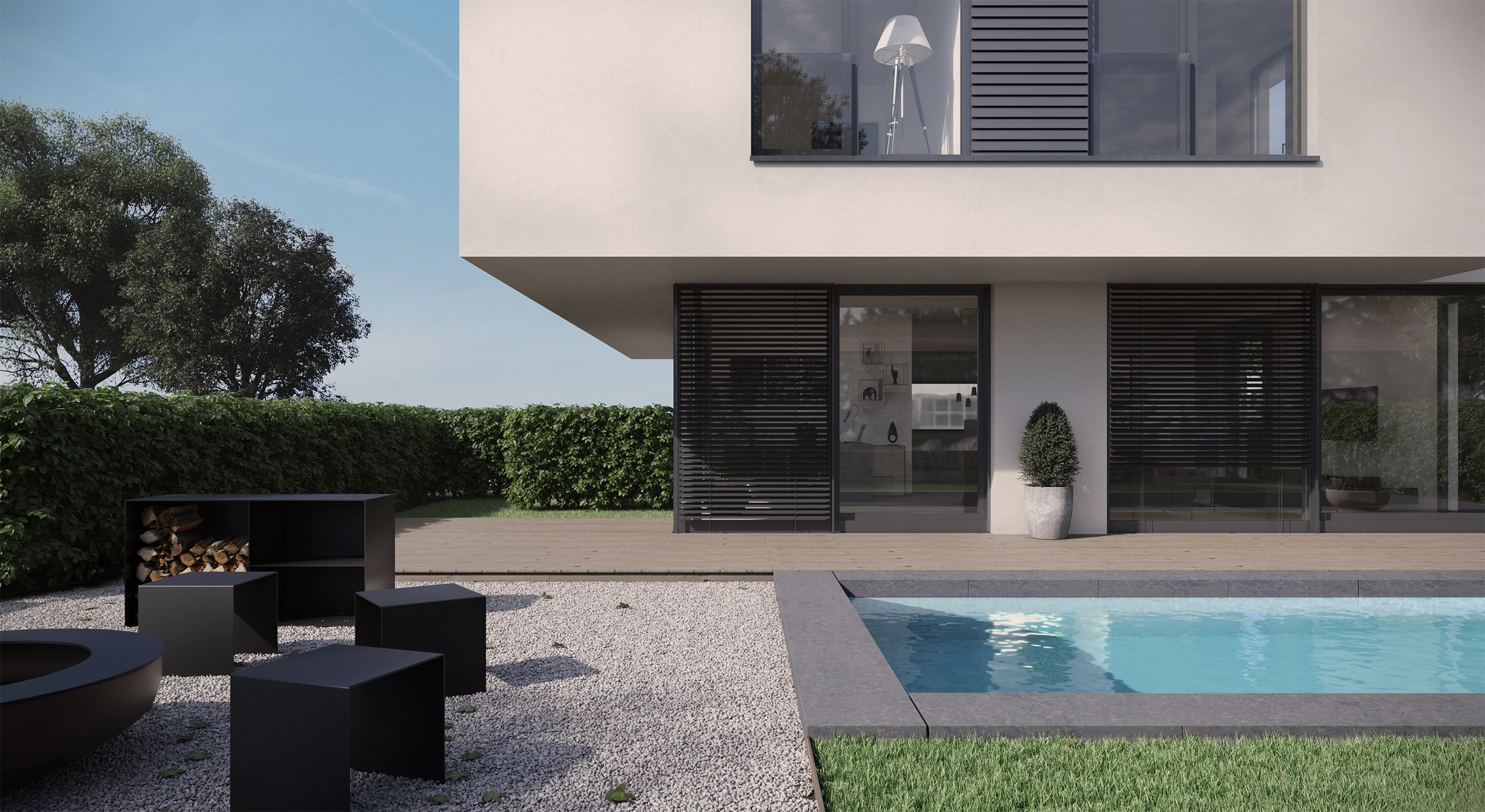 Moderne Architektur mit Charakter: Dieses Wohnhaus überzeugt durch klare Linien, versetzte Kuben und eine reduzierte, zugleich warme Designsprache. Große Öffnungen schaffen Weitblick und verbinden die Ebenen mit der umgebenden Landschaft. In einem reinen Wohngebiet gelegen, bietet das Haus Raum für Familie, Ruhe und architektonische Qualität.